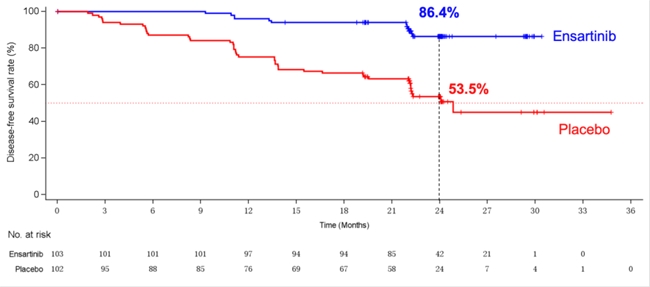 △2年DFS率:恩沙替尼86.4% vs 安慰劑53.5%